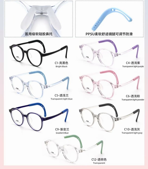 This eyeglasses are made of lightweight and comfortable TR90, adjustable arms and soft nose pads, this frame is suitable for kids and teenagers daily wearing.